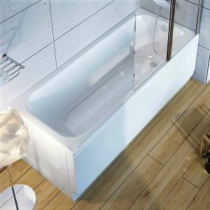 Divdaļīga, salokāma stikla vannas siena.