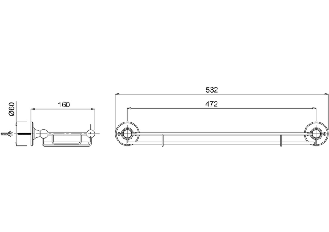 Izmērs: 532 x 160 x 60 mm . Svars: 1.5 kg