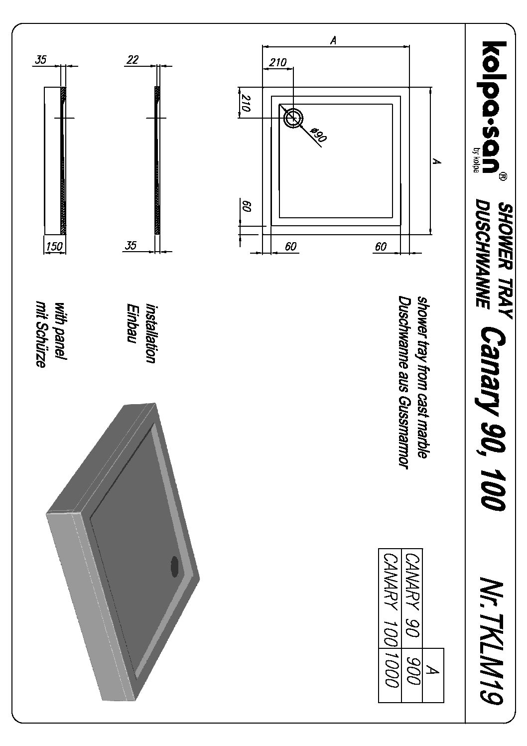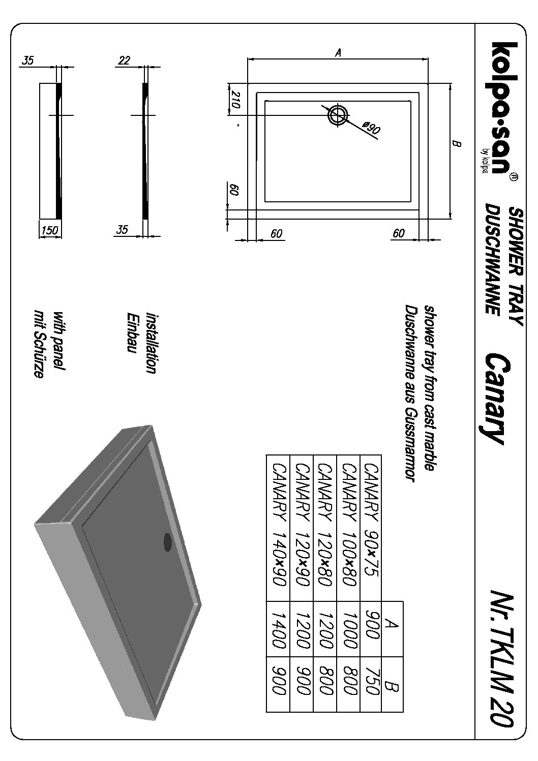 Taisnstūrveida un kvadrātveida dušas paliktnis, izgatavots no marmora masas, kura sastāv no marmora pulvera un īpašu sveķu maisījuma. Šādam materiālam piemīt augsta ķīmiskā un mehāniskā noturība, viendabīga, bezporaina struktūra visā tā biezumā, gluds un viegli kopjams materiāls. Iespējamās variācijas: iebūvējams, ar paneli. Komplektā ar paneli iekļautas kājas.