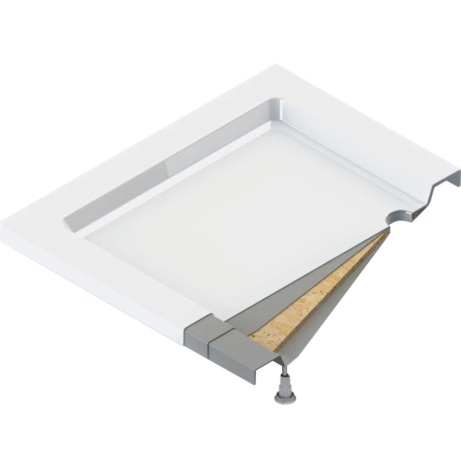 Kvadrātveida, akrila dušas paliktnis Jasmin, izgatavots no sanitārā akrila loksnes, kura pastiprināta ar kompozīta šķiedras audumu, mitruma izturīgu kokšķiedras plāksni un īpašu sveķu slāni. Komplektā ietilpst dušas paliktnis ar priekšējo paneli, kurš ir neatņemama sastāvdaļa un paliktņa kājas.