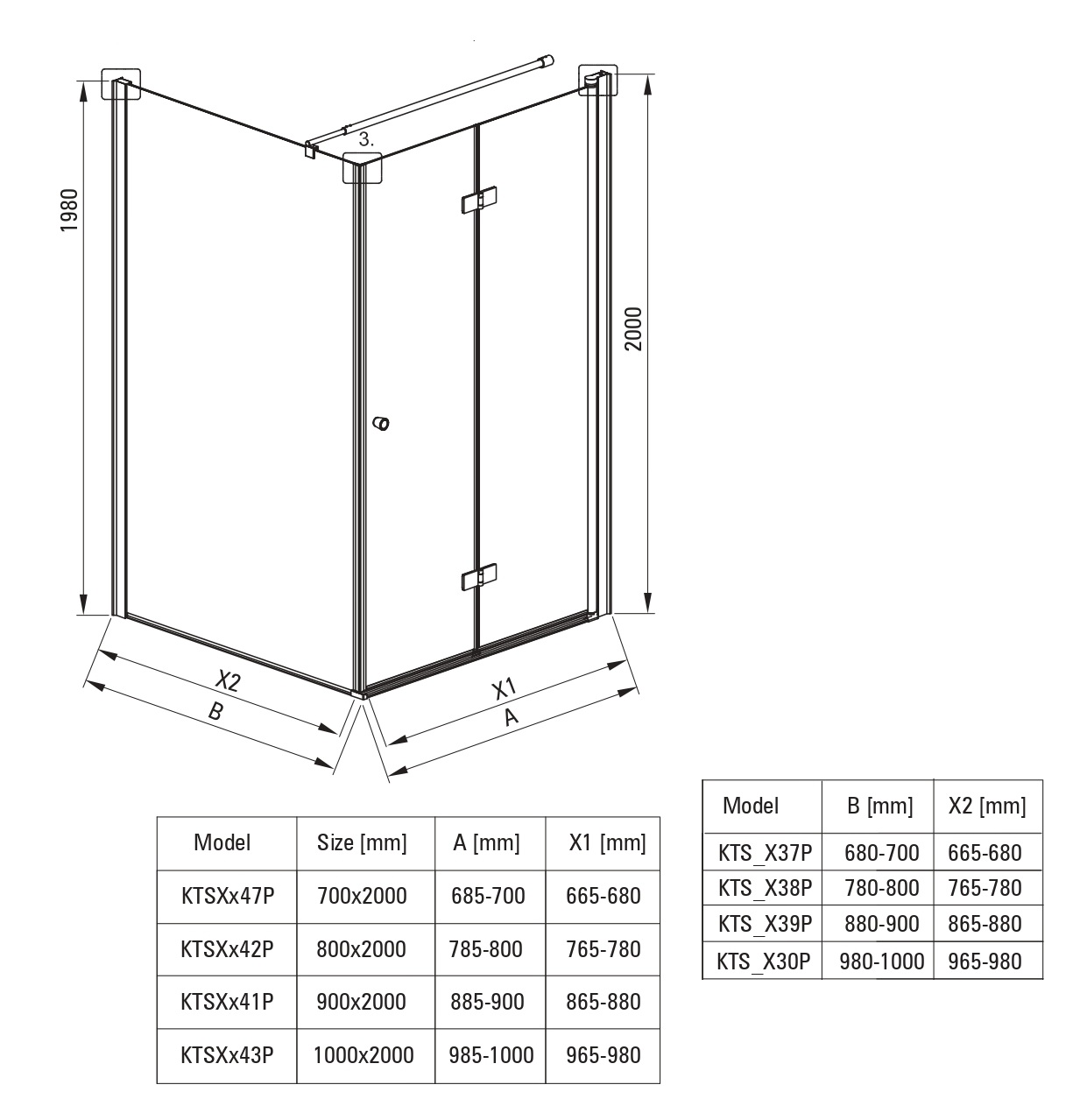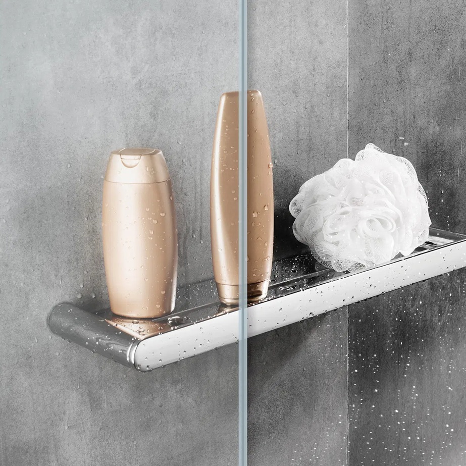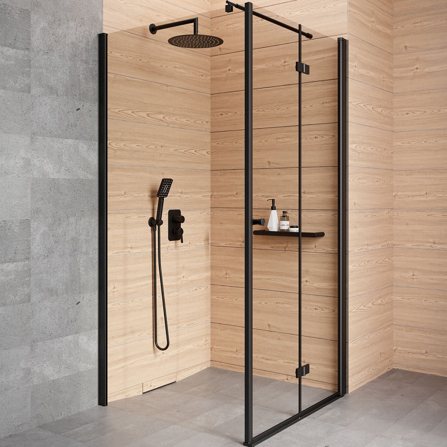 Kvadrātveida dušas stūris Kerria KTSW sastāv no vienas sienas un vienām, 6mm biezām salokāmām stikla durvīm. Durvis ērti salokāmas uz iekšpusi, veidojot plašu ieeju. Iespējama uzstādīšana bez dušas paliktņa, tieši uz grīdas. Durvju eņģēs iestrādāts durvju pacelšanas mehānisms atvieglojot to atvēršanu. Active Cover stikla pārklājums atgrūž ūdens lāses un novērš kaļķakmens un citu nogulšņu veidošanos. Pieejamais stikla veids total white – extra caurspīdīgs. Iespējamās profilu, durvju rokturu, eņģu, sienas stiprinājuma krāsas: hromēta, melna matēta.