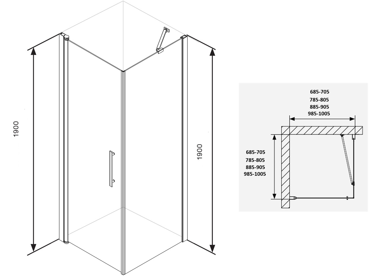 Kvadrātveida dušas stūris Square sastāv no vienas 6mm biezas sienas un vienām 6mm biezām veramām stikla durvīm. Durvju rokturu, eņģu, sienas stiprinājuma krāsa: hroms. Komplektā ietilpst sienas stiprinājuma stienis. Iespējama uzstādīšana bez dušas paliktņa, tieši uz grīdas. Durvju eņģes ar liftu atvieglo to atvēršanu. Pieejamie stikla veidi: caurspīdīgs, tonēts, daļēji matēts. Dušas stūri iespējams uzstādīt abpusēji labā vai kreisā stūrī.