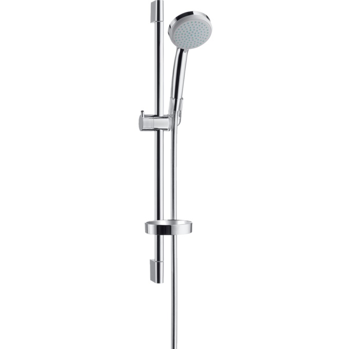 Dušas komplekts Croma 100 Vario ar ziepju trauku. Sastāv no regulējama dušas lifta, dušas galvas 100mm, ar 4 režīmiem, dušas pievada un ziepju trauka. Dušas galvai QuickClean pretapkaļķošanās sistēma. Dušas pievadam pretsapīšanās uzgaļi, pievada garums 150cm. Krāsa hromēta.