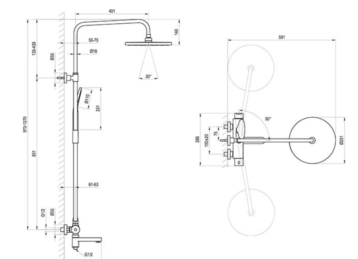 Dubultais dušas komplekts ar temostau DS 092. Sastāv no ūdens maisītāja ar termostau ar pielokāmu vannas snīpi, augšējo dušu ar lielo dušas galvu, 3-funkciju rokas dušu, dušas turētāju un lokanā pievada. Dušas sprauslām Anti-calc pretapkaļķošanās sistēma. Dušas pievads aprīkots ar uzgaļiem, kuri novērš tā sapīšanos. Termostats ļauj uzturēt vienmērīgu ūdens temperatūru pat strauji mainoties ūdens spiedienam sistēmā. Izgatavots no misiņa, Iespējamās krāsas: hromēts