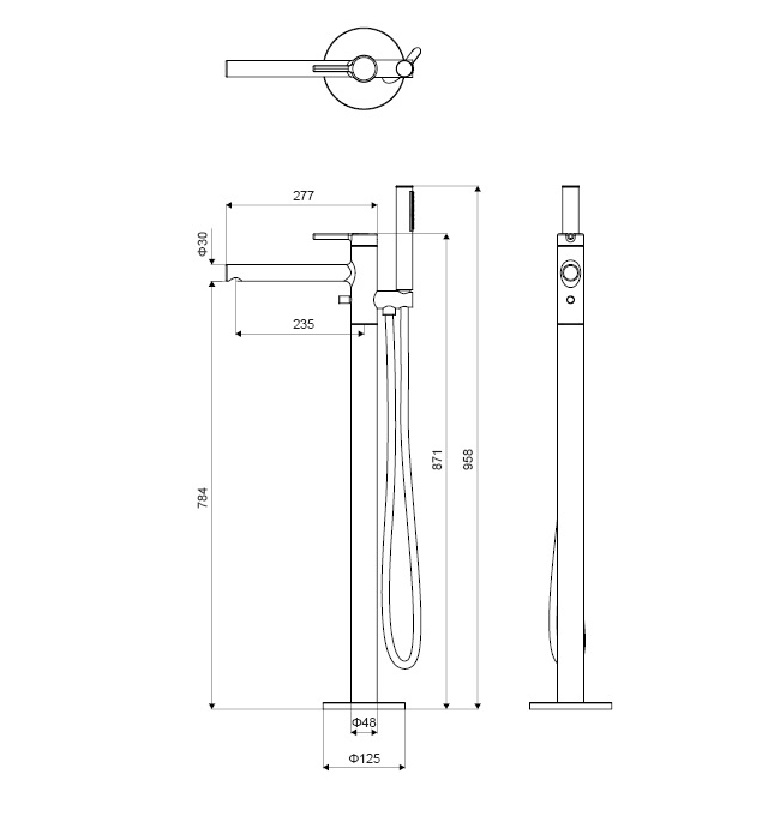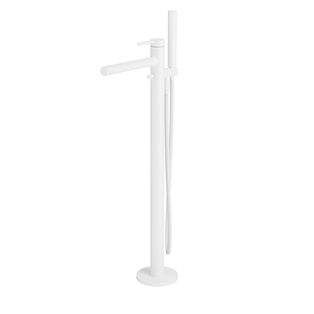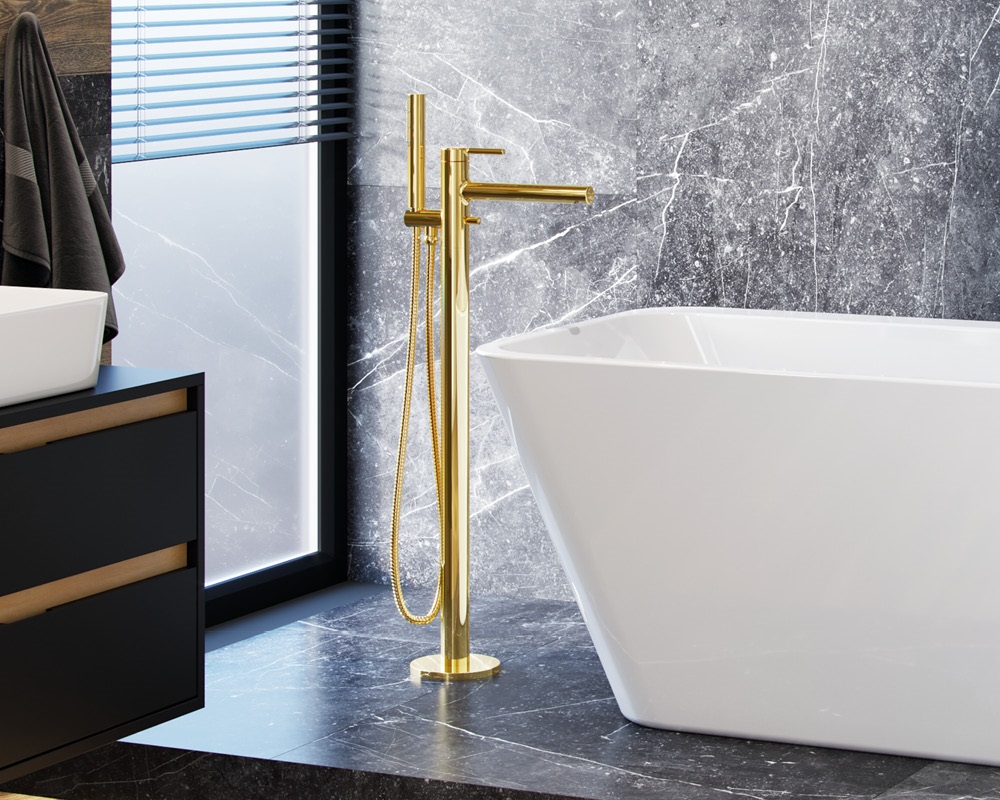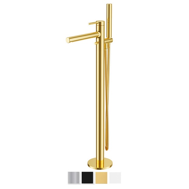 Viensviras ūdens maisītājs vannai PI Line uz grīdas stiprināms, ar dušas komplektu un grīdas pieslēgkomplektu. Izgatavots no misiņa. Maisītājam ir ūdens aerators, kurš samazina ūdens patēriņu. Dušas sprauslām Anti-calc pretapkaļķošanās sistēma. Izgatavots no misiņa.