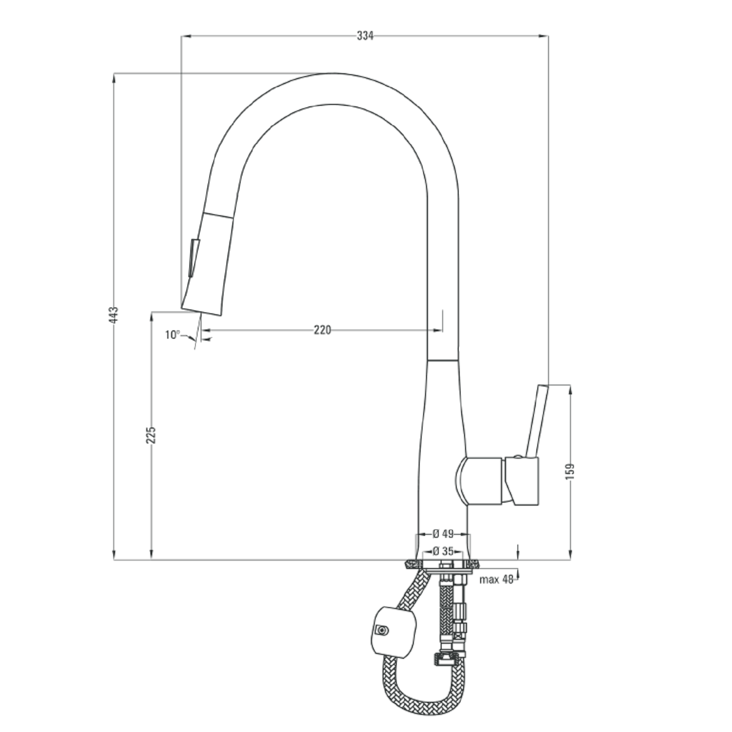 Viensviras ūdens maisītājs virtuves izlietnēm ar izvelkamu augsto snīpi. Komplektā ar ūdens pievadiem. Ūdens patēriņa klase – Z(augstākā), mazāk par 9 litriem/minūtē. Maisītājs aprīkots ar ūdens aeratoru, kurš samazina ūdens patēriņu.