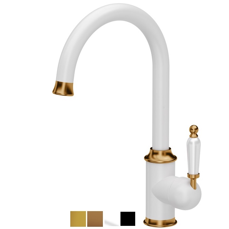 Viensviras ūdens maisītājs virtuves izlietnēm Rachel ar grozāmu snīpi. Retro stila ūdens maisītājs komplektā ar ūdens pievadiem. Q-Fix stiprinājumi nodrošina ērtu un ātru ūdens maisītāja montāžu. Maisītājs aprīkots ar ūdens aeratoru, kurš samazina ūdens patēriņu. Iespējamās krāsas: vara, zelta, melna/zelta, melna/vara, balta/zelta, balta/vara.