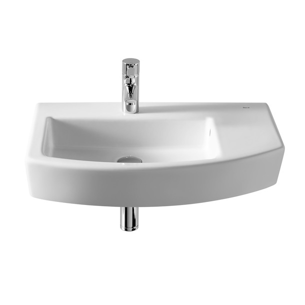 Pie sienas stiprināma vannas istabas izlietne ar plauktu. Izgatavota no īpaši gludas, izturīgas, īpaši baltas sanitārās keramikas. Iespējamās krāsas: balta. Izlietne iespējama tikai ar plauktu labā pusē. Izlietni iespējams komplektēt ar kāju vai puskāju.