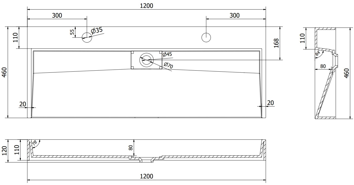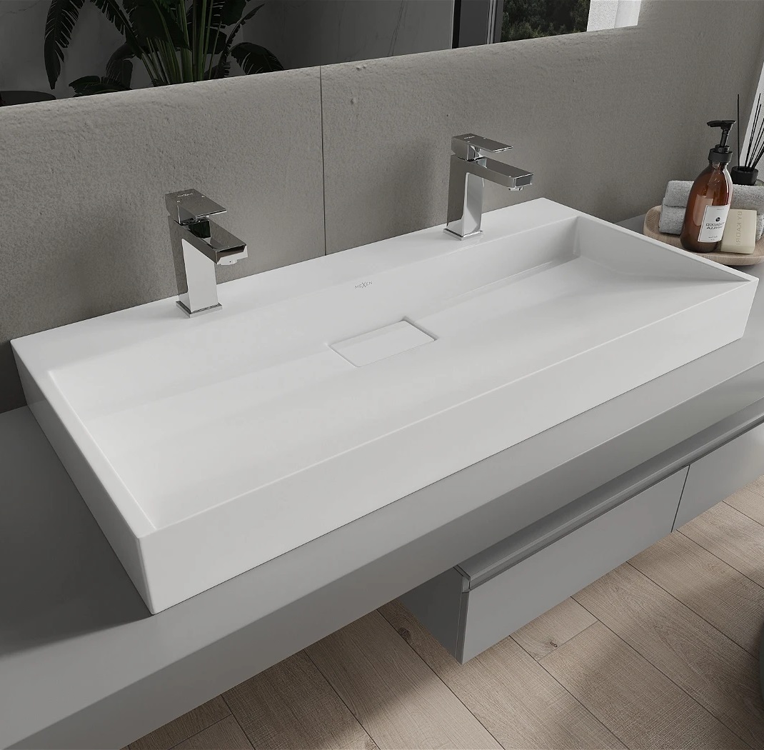 Uz virsmas stiprināma kompozītmateriāla vannas istabas izlietne Ava, izgatavota no “mākslīgā akmens”. Tas ir akrila bāzes kompozītmateriāls, kuram piemīt augsta ķīmiskā un mehāniskā noturība, laba siltuma noturība, viendabīga, bezporaina struktūra visā tā biezumā, patīkami gluds un viegli kopjams materiāls. Iespējamās krāsas: balta, melna matēta.