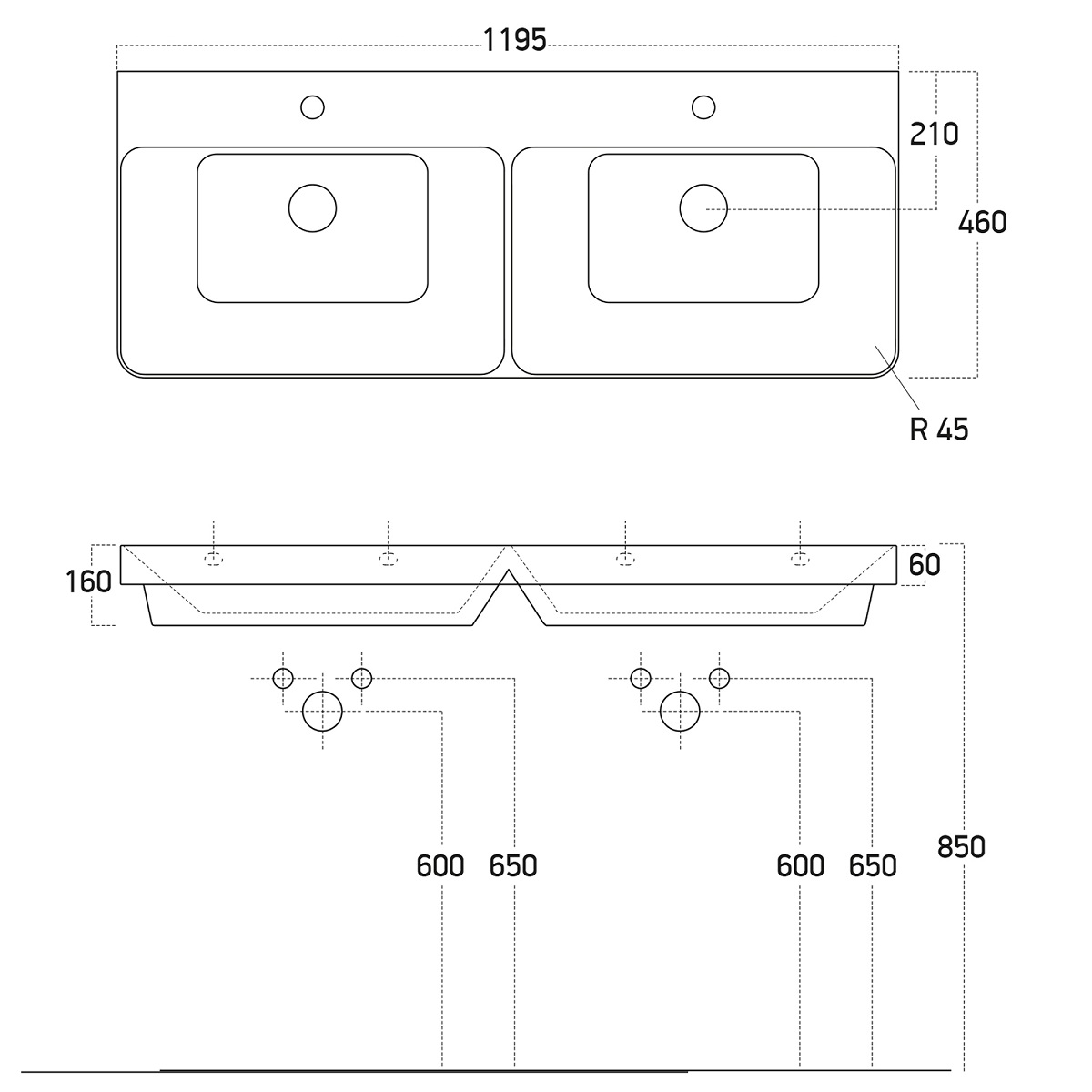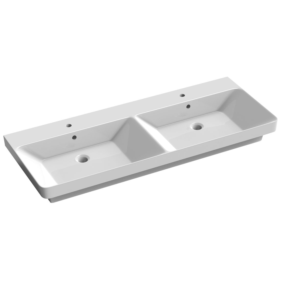 Dubultā keramiskā izlietne Thalie. Izgatavota no gludas, izturīgas, īpaši baltas sanitārās keramika Izlietne uzstādāma pie sienas atsevišķi vai kopā ar izlietnes skapīti.
