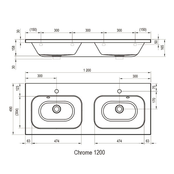 Dubultā, marmora masas izlietne Chrome, izgatavota no kompozīta – dolomīta pulvera un sveķu maisījuma. Izlietne uzstādāma pie sienas atsevišķi vai kopā ar izlietnes skapīti Chrome. Komplektā ietilpst izlietne un izlietnes stiprinājumi.