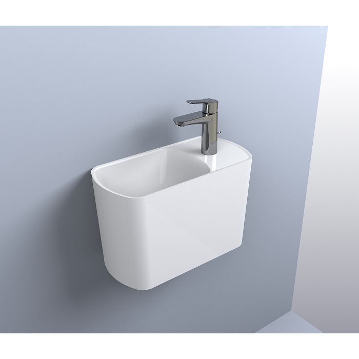 Pie sienas stiprināma marmora masas vannas istabas izlietne Helix ar izturīgu Gelcoat pārklājumu. Izlietne izgatavota no marmora pulvera un īpašu sveķu maisījuma. Šāda tehnoloģija piešķir blīvu struktūru bez porām un pilnīgi gludu virsmu, lielu mehānisko izturību, augstu krāsas noturību un lieliskas siltuma izolācijas īpašības. Gelcoat pārklājums rūpējas par higiēnu un piešķir izstrādājumam antibakteriālas īpašības.