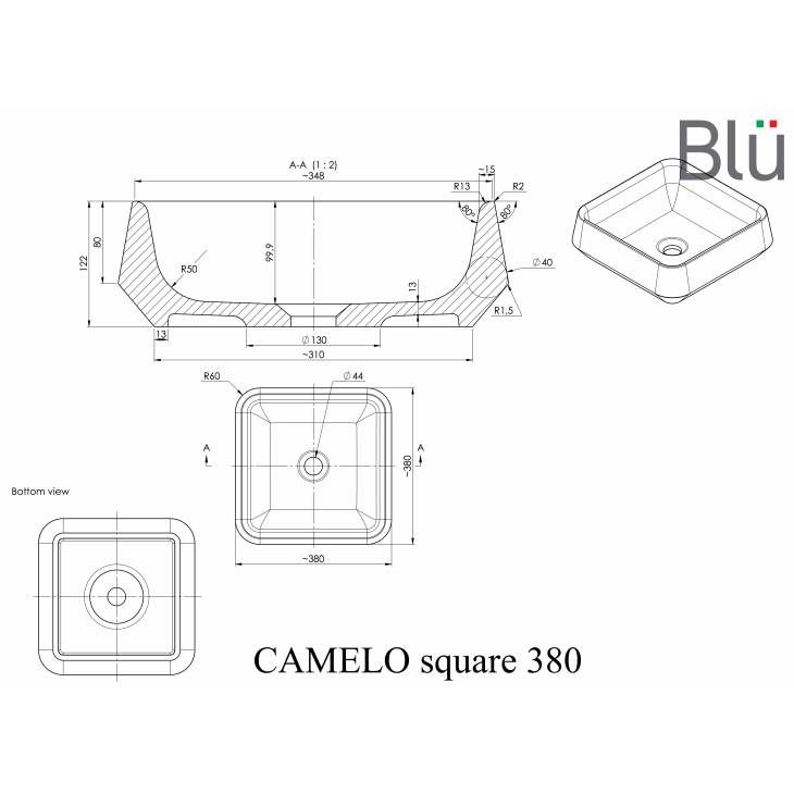 Izlietne CAMELO Square 38x38cm