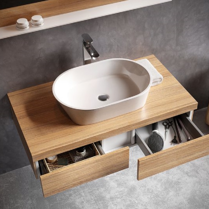 Akmens masas izlietne Solo, izgatavota no kompozīta – dolomīta pulvera un sveķu maisījuma. Izlietne bez pārplūdes atveres, uzstādāma tikai uz virsmas. Izlietnei jāizvēlas pagarinātais ūdens maisītājs.