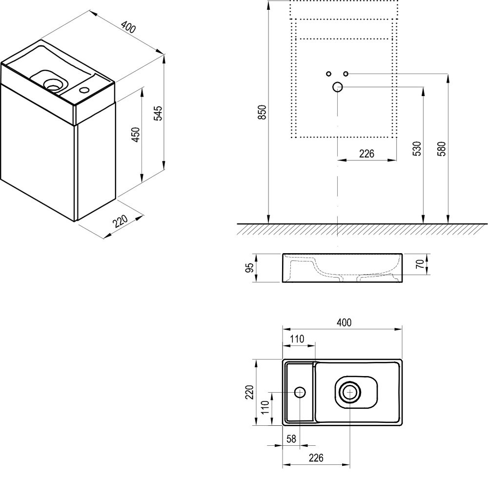 Vannas istabas skapītis Veda, sastāv no izlietnes skapīša ar stiprinājumiem un keramiskās izlietnes. Skapītis paredzēts stiprināšanai pie sienas. Korpuss tiek piegādāts samontēts. Stiprinot durvis, jūs variet izvēlēties kreiso vai labo atvēršanas variantu. Izgatavots no impregnētas laminētas kokskaidu plāksnes MDF ar laminētu apdari. Iespējamās krāsas: balta. Izlietni  var uzstādīt abpusēji, ar ūdens maisītāju labajā vai kreisajā pusē. Iespējamās izlietnes krāsas: balta, balta matēta, melna matēta.
