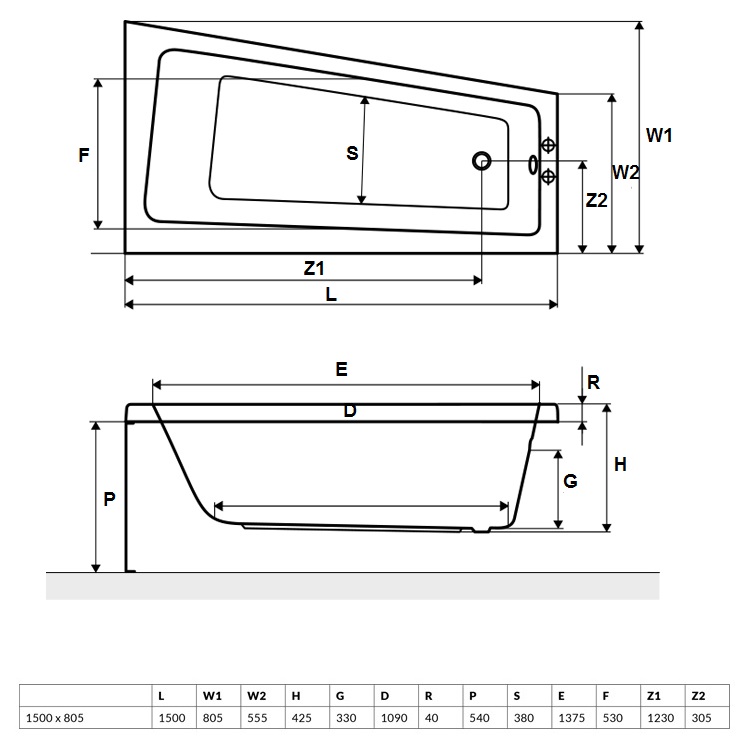 Akrila stūra vanna Ava, izgatavota no lietā akrila, kurš pastiprināts ar stikla šķiedras audumu un epoksīda sveķu slāni. Vannas pamatā iestrādāts mitruma izturīgs kokšķiedras panelis maksimālai vannas stingrībai. Vannai pieejami divu veidu priekšējie paneļi: akrila panelis, armēta polistirola panelis. Armēto polistirola paneli viegli aplīmēt ar flīzēm vai ūdens noturīgu līmplēvi. Komplektā ietilpst vanna un vannas kājas.