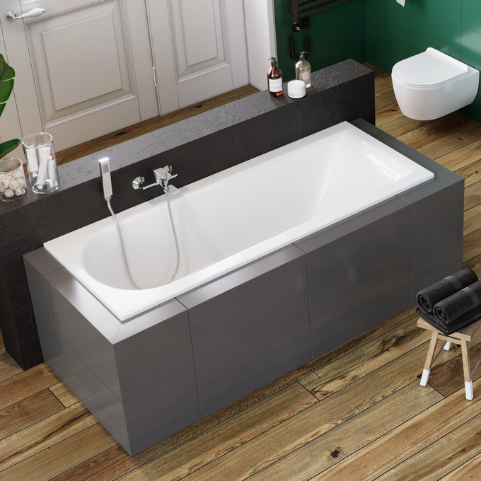 Iebūvējama akrila vanna komplektā ar vannas kājām.