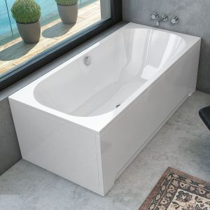 Akrila, taisnstūra vanna Shea, izgatavota no sanitārā akrila loksnes, kura pastiprināta ar kompozīta šķiedras audumu un īpašu sveķu slāni. Vannas pamatnē iestrādāta mitruma izturīga kokšķiedras plāksne maksimālai stingrībai. Komplektā ietilpst vanna un vannas kājas. Iespējams izvēlēties vannu ar baltu vai melnu matētu, viļņotas faktūras priekšējo paneli.