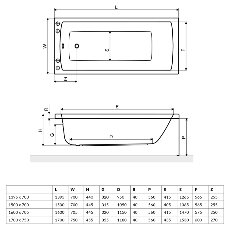 Aquaria 140×70, 150×70, 160×70, 170x75cm