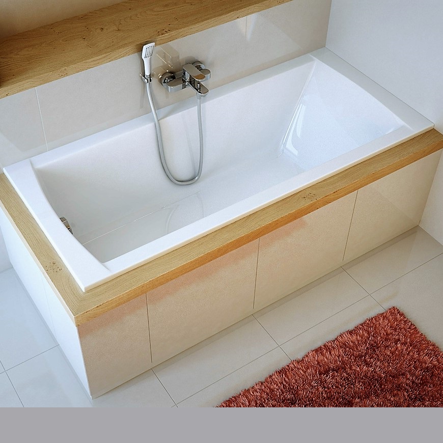 Taisnstūra akrila vanna Aquaria, izgatavota no lietā akrila masas, kura pastiprināta ar kompozīta šķiedras audumu un īpašu sveķu slāni. Lietais akrils nodrošina augstu akrila blīvumu un viendabīgumu visā tā biezumā. Vannas pamatā iestrādāts mitruma izturīgs kokšķiedras panelis maksimālai vannas stingrībai. Vannai pieejami divu veidu priekšējie paneļi: akrila panelis, armēta polistirola panelis. Armēto polistirola paneli viegli aplīmēt ar flīzēm vai ūdens noturīgu līmplēvi. Komplektā ietilpst vanna un vannas kājas.