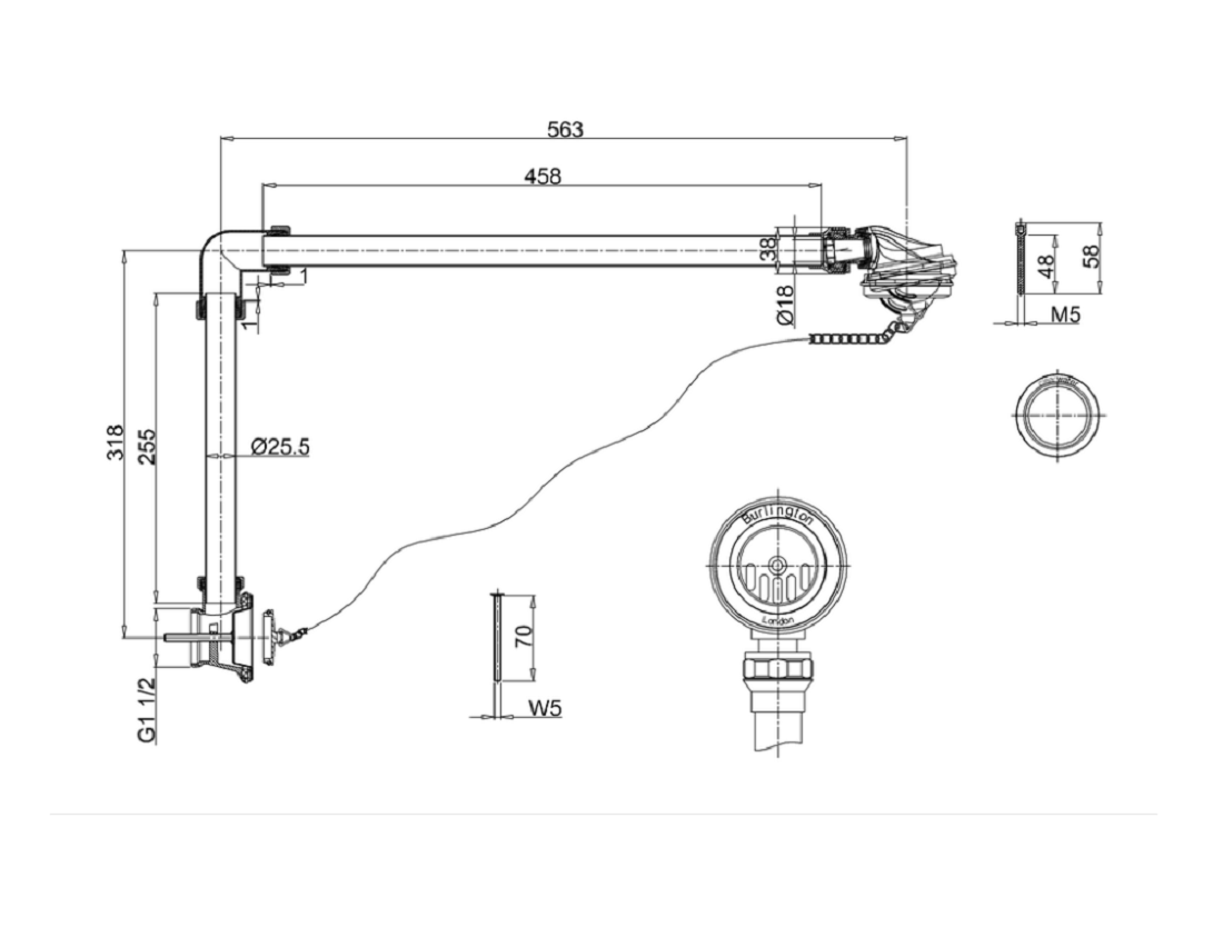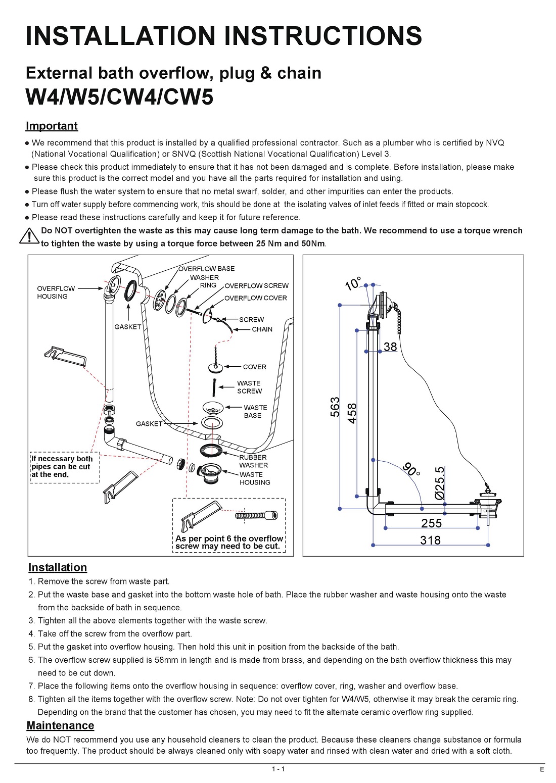 Dekoratīva vannas pārplūde ar izplūdes ventili un korķi ar ķēdīti. Piemērots brīvi stāvošām vannām.