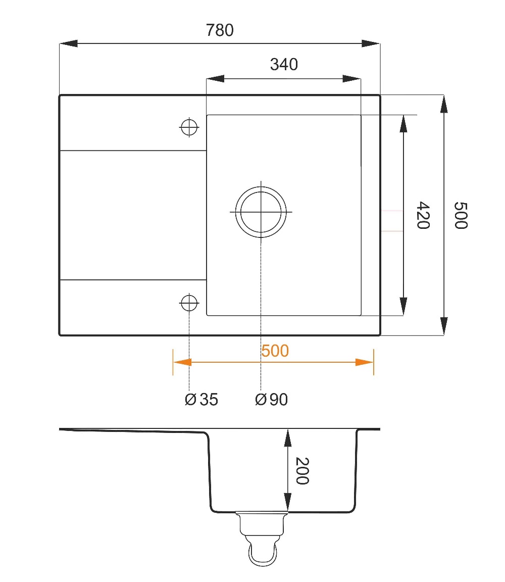 Izlietne izturīga pret skrāpējumiem, triecieniem, augstām temperatūrām, izbalēšanu. Izlietnei rūpnieciski iestrādāta ūdens maisītāja atvere. Izlietne iebūvējama abpusēji ar galdu labā ve kreisā pusē. Komplektā: stiprinājumi, blīvgumija, sifons ar mehānisko 3.5″ izplūdes korķi.