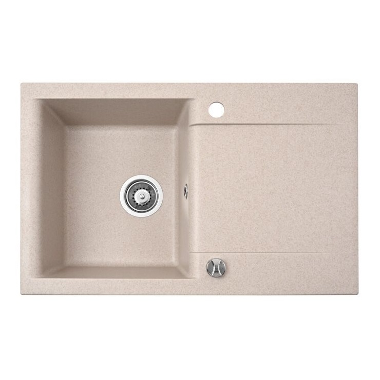 Iegriežama galda virsmā, akmens masas virtuves izlietne ar galdu un pārplūdes atveri. Izgatavota no granīta pulvera un poliestera sveķu maisījuma, kas nodrošina ideālu cietības un elastības apvienojumu. Izlietne pieejama piecos toņos: balta, bēša, smilškrāsas, pelēka, grafīta.