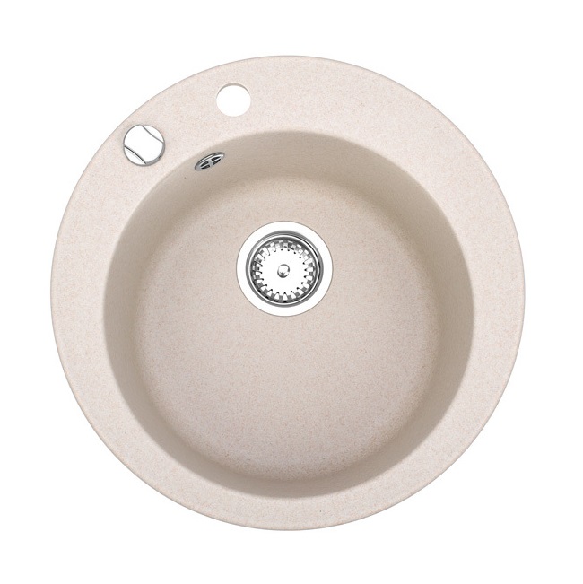 Iegriežama galda virsmā, akmens masas virtuves izlietne ar pārplūdes atveri. Izgatavota no granīta pulvera un poliestera sveķu maisījuma, kas nodrošina ideālu cietības un elastības apvienojumu. Izlietne var būt izgatavota sešos toņos: balta, bēša, smilškrāsa, pelēka, grafīta, melna.