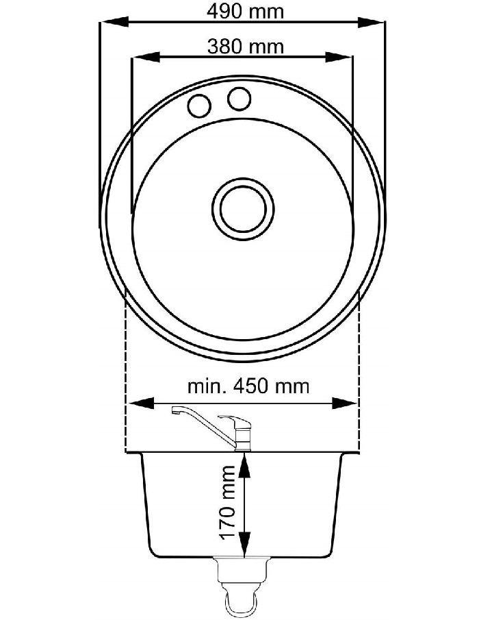 Izlietne izturīga pret skrāpējumiem, triecieniem, augstām temperatūrām, izbalēšanu. Izlietnei rūpnieciski iestrādāta ūdens maisītāja atvere.