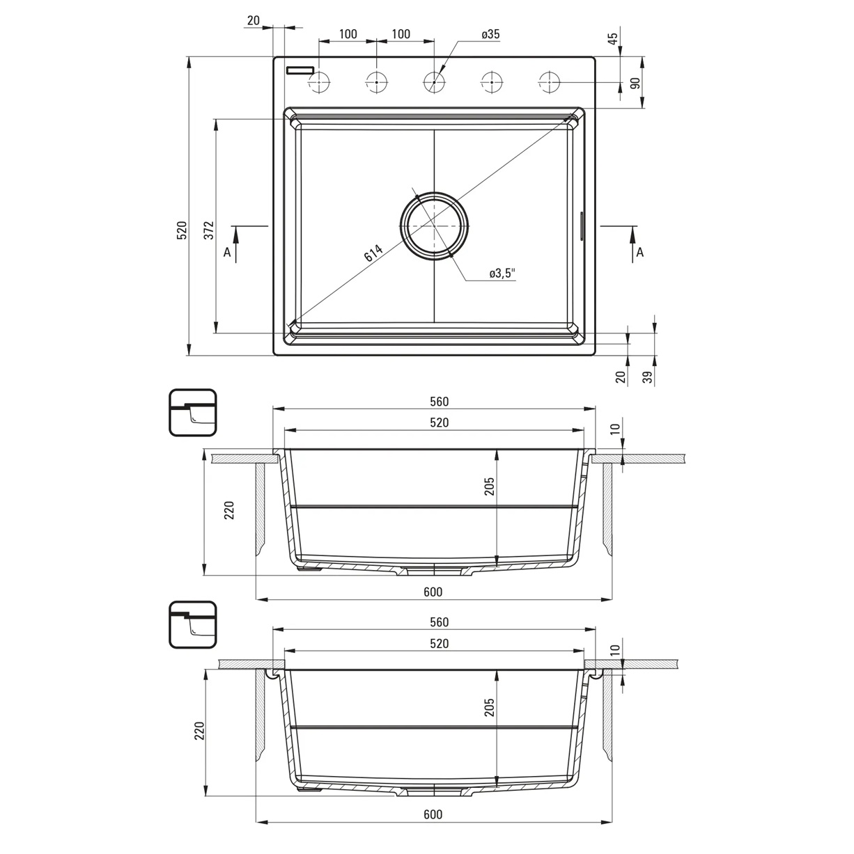 Iebūvējama galda virsmā no apakšas vai no augšas, akmens masas virtuves izlietne Magnetic S un pārplūdes atveri. Izgatavota no granīta pulvera, kurš bagātināts ar sudraba joniem un īpašu sveķu maisījuma, tas nodrošina antibakteriālas īpašības, ideālu cietības un elastības apvienojumu. Izlietne pieejama piecos toņos: alabastra, grafīta, melna, pelēka, antracīta. Izlietne izturīga pret skrāpējumiem, triecieniem, augstām temperatūrām, izbalēšanu, traipu veidošanos. Komplektā: stiprinājumi, blīvgumija, sifons ar automātiski aizveramu izplūdes korķi. Papildus iespējams iegādāties izlietnes Magnetic aksesuāru komplektu, kurā ietilpst: dārzeņu grozs, šķīvju un piederumu turētājs. Aksesuāri ērti stiprinās ar magnētu palīdzību, kuri iestrādāti izlietnē.