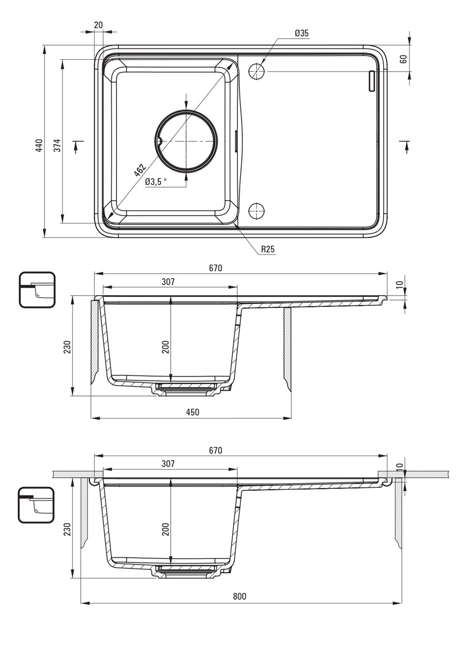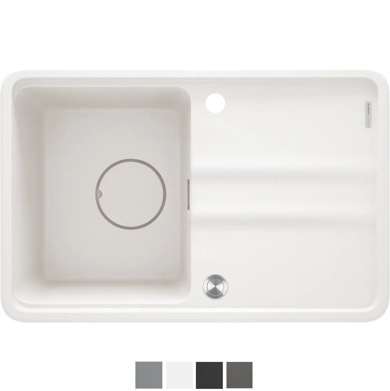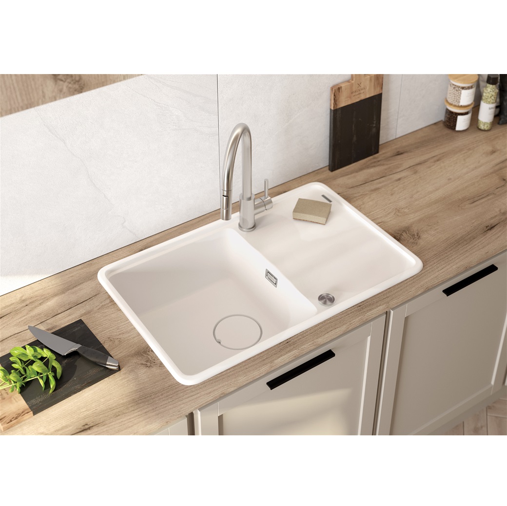 Akmens masas izlietne Momi, iebūvējama galda virsmā no apakšas vai no augšas. Izgatavota no granīta pulvera, kurš bagātināts ar sudraba joniem un īpašu sveķu maisījuma, tas nodrošina antibakteriālas īpašības, ideālu cietības un elastības apvienojumu. Izlietne izturīga pret skrāpējumiem, triecieniem, augstām temperatūrām, izbalēšanu, traipu veidošanos. Iespējams izvēlēties šādas krāsas: grafīta, melna, alabastra, pelēka, antracīta. Komplektā ietilpst: griešanas dēlītis, izplūdes nosedzošais vāciņš, stiprinājumi, sifons, automātiskais klik-klak izplūdes korķis. Iespējams uzstādīt abpusēji ar galdu labā vai kreisā pusē.
