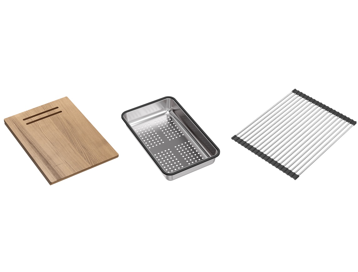 Nerūsējošā tērauda virtuves izlietne ar aksesuāru komplektu