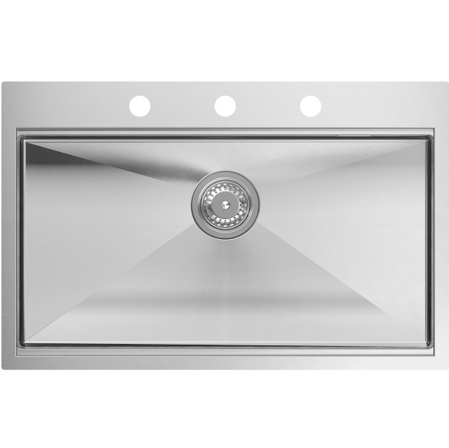 Burt iegriežama vai iegremdējama galda virsmā, nerūsējošā tērauda virtuves izlietne ar pārplūdes atveri sānos. Izgatavota no augstvērtīga, 1mm bieza, AISI 304 markas nerūsējošā tērauda. Izlietne izgatavota ar tērauda virsmas apstrādi: satin(matēta virsma). Komplektā:  griešanas dēlis, dozators, dārzeņu paplāte, stiprinājumi, sifons ar mehānisko 3,5″ izplūdes korķi, dekoratīvais vāciņš izplūdei,