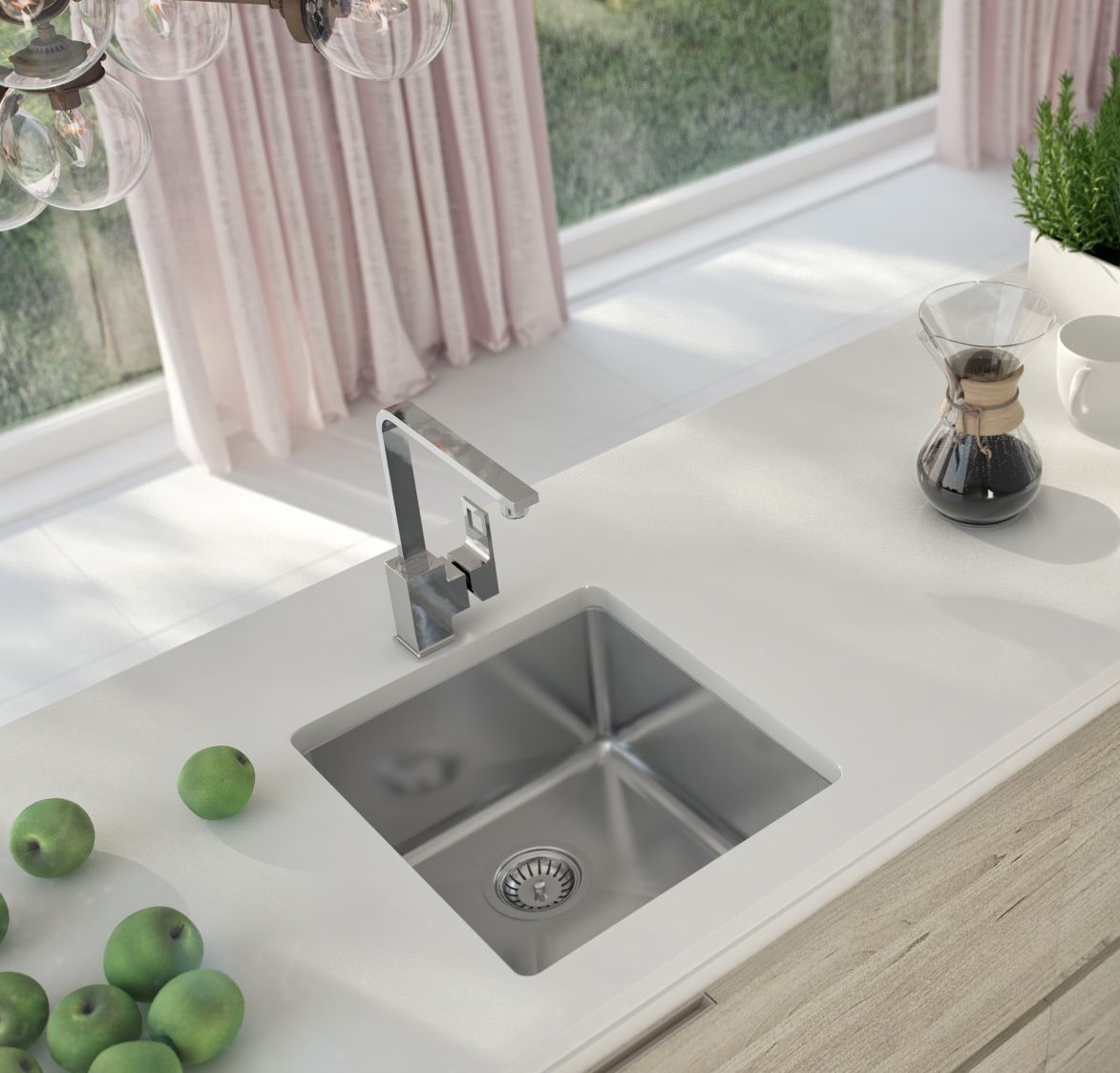 Universāli iebūvējama, nerūsējošā tērauda virtuves izlietne Egeria ar sāna pārplūdes atveri. Iebūvējama iegriežot galda virsmā vai iebūvējot zem galda. Izgatavota no augstvērtīga, 1mm bieza AISI 304 markas nerūsējošā tērauda. Izlietne izgatavota ar tērauda virsmas apstrādi: brushed(slīpēta virsma). Komplektā: stiprinājumi, blīvgumija, sifons ar lielo 3,5″ izplūdes korķi, dekoratīvais vāciņš izplūdei.