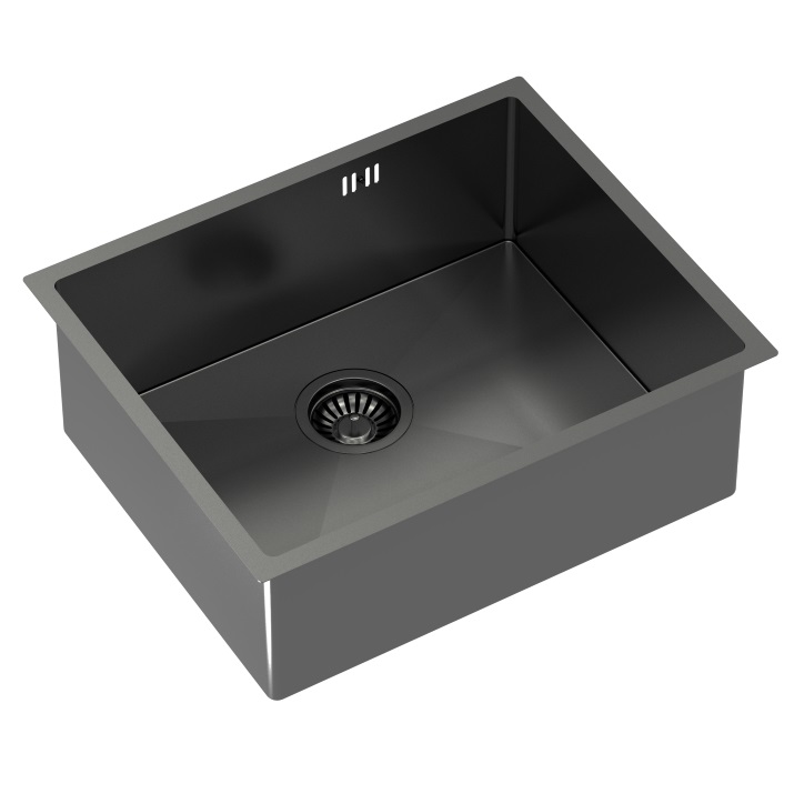 Anthony iebūvējama, 1mm bieza nerūsējošā tērauda SteelQ PVD virtuves izlietne pārplūdes atveri sānos. Iebūvējama iegriežot galda virsmā. SteelQ PVD ir tērauds, kurš pārklāts ar cieta pārklājuma slāni ar kristalizācijas tehnoloģiju. Šāda tehnoloģija veido izturīgus tērauda izstrādājumus ar augstas kvalitātes vara, zelta vai grafīta pārklājumu. PVD pārklājums ir daudz izturīgāks nekā izejmateriāls – nerūsējošais tērauds. Izlietne izgatavota ar tērauda virsmas apstrādi: satin(matēta virsma). Komplektā: stiprinājumi, blīvgumija, sifons ar lielo 3,5″ izplūdes korķi izvēlētajā krāsā. Iespējamās krāsas: zelta, vara, grafīta, nerūsējošā tērauda.