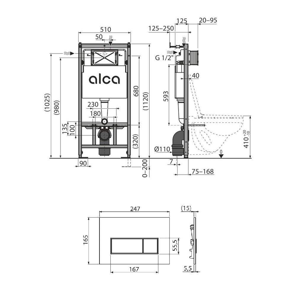Iebūvējama skalojamā kaste ar tērauda rāmi Alca Drain Simple, komplektā ar pogu, pie sienas piekaramiem podiem. Paredzēts montāžai pie nesošas sienas vai ģipškartona konstrukcijas. Rāmja slodzes izturība – 400 kg. Komplektā ietilpst: izolēta skalojamā kaste, regulējams nesošais rāmis, rāmja stiprinājumi pie sienas, poda pieslēglīkums, poda stiprinājumi, dubultās skalošanas poga hromētā krāsā.
