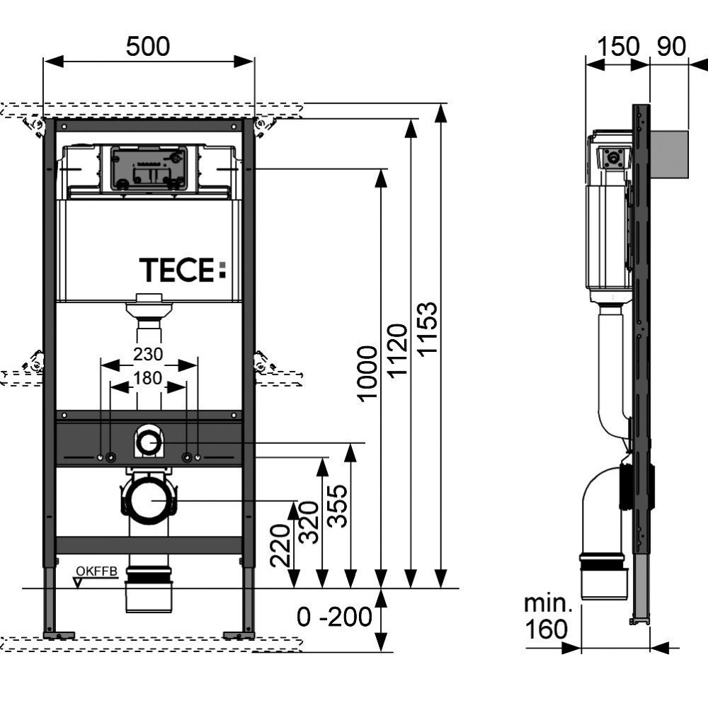 Iebūvējama skalojamā kaste ar tērauda rāmi TeceProfil, pie sienas piekaramiem podiem. Paredzēts montāžai pie nesošas sienas vai ģipškartona konstrukcijas. Rāmja slodzes izturība – 400 kg. Komplektā ietilpst: izolēta skalojamā kaste, regulējams nesošais rāmis, rāmja stiprinājumi pie sienas. Skalojamai kastei iespējams izvēlēties vairāku dizainu daudzkrāsainas pogas. Piem.TeceLoop, TeceLux, TeceBace, TeceNow